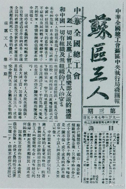 1933年7月15日,劉少奇在《蘇區(qū)工人》報(bào)第三期上發(fā)表《停止“強(qiáng)迫介紹”與救濟(jì)失業(yè)工人》和《模范的工人要求綱領(lǐng)》兩篇文章。
